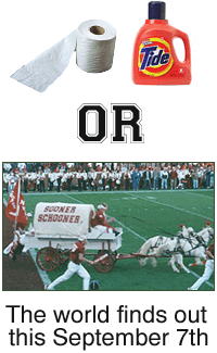 Hey, why haven't I seen that guy around here in Norman? THAT is why I moved here! ¤ ¤ credit: Miranda | 08.07.02 at 12:59 AM | link-That's no kidding! I'd move back to OK for somethin' that pretty! ¤ ¤ credit: Susan | 08.07.02 at 01:32 AM | link-Don't worry the sooners now have been jinxed by SI cover. ¤ ¤ credit: matt | 08.07.02 at 11:34 AM | link-Not too worried about the jinx considering the year we won the championship we went 13-0 and beat FSU 13-2. Unluck means luck in Soonerland. Hell, Corso picking against us is a good thing. Sooners cheer when he does! ¤ ¤ credit: robyn | 08.07.02 at 02:38 PM | link-I think I'll go with Crimson Tide -- no matter what the outcome! Hey -- you've got to be loyal, no?! ;) ¤ ¤ credit: Christi | 08.07.02 at 11:46 PM | link-You know, not to say I wouldn't be disappointed as hell if we lost -- but I could completely handle losing to Bama. It's a program I've long-admired and respected, and I've been looking forward to (and counting down the days) this back-to-back match-up since the day we first learned of it back in '96. ¤ ¤ credit: robyn | 08.07.02 at 11:57 PM | link-*sniff*... that was the sweetest! I don't think you'll have to worry too much about it (and yes, I do LOVE my team). I just know what our limitations are right now. Our history is extremely cool, though! I always feel proud... especially during F-ball season. The fall leaves, the roar of the crowd... *sigh* I'm getting all teary! ;) ¤ ¤ credit: Christi | 08.08.02 at 12:59 AM | link-