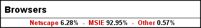 Now why would I choose to cator to Mozilla right now when 93 out of 100 people that visit my site are on IE? (I had 18,437 unique hits to my blog last week, and currently have 4,063 unique hits for this week. Roughly 20,914 of the 22,500 users in the last ten days were on IE. Only 128 of those were on "other" -- of which just some use Mozilla.) Does. Not. Compute. And won't until those numbers start to change... ¤ ¤ credit: robyn | 11.20.02 at 03:54 PM | link-The point everyone is missing is it doesn't matter a shit what browser we designers use...it's the rest of the frickin' world we have to worry about. Because they send us whiny emails, bitch and moan about their pet browser. We code for MAXIMUM backwards compatibility just so we can have three minutes of frickin' free time to ourselves in any given day. Mozilla may be the greatest thing since free boobies but until a significant number of surfers are using it, it truly does not exist on our radar. ¤ ¤ credit: Sekimori | 11.20.02 at 04:09 PM | link-First of all, you need to remember that many web designers are stupid. They put in Javascript code to block out anyone that uses anything other than IE. So a lot of Mozilla users fake to have their browsers look like IE. Even aside from that my stats show much different numbers than yours. You get a lot more traffic than I do. I've only had about 29,000 hits so far this month. And my stats program works a bit differently than yours, so my numbers aren't quite the same. However, out of the top 15 User-Agents to my site, getting rid of things that aren't browsers shows 5556 Mozilla hits, and 4471 IE hits. Perhaps part of the reason your IE readership is so high is because your site doesn't work so well in Mozilla. Additionally, my stats lean towards Mozilla simply because of my more technical readership. You should consider this: Let's assume for a second that Mozilla actually is a better brower for developers. If you continue to design for IE and neglect Mozilla, then your readers will continue to have to keep a copy of IE around just to view your site. However, if you saw the benefits of a browser that SUPPORTS OPEN STANDARDS then you would design for the standard, and then implement work arounds to appease the masses. It isn't that hard. If you continue to show your support for proprietary formats, buggy rendering engines, and customer product lock-down by developing sites that don't work in standards complaint browsers (like Mozilla), then, in the long run, you make your own life hard. If however, you support a STANDARD, then you're making a statement. You're saying, "I don't want to have to code a web page for each different browser. I want to code once and have it just work." I'm not saying that Mozilla does everything right. It has bugs just like any other piece of software. But at least it tries and does a damn good job at it. IE gets things as basic as the "box model" wrong. And if you do a search on the web, more people are inventing workarounds for IE than they are for Mozilla. By designing pages that only work properly in such a flawed browser you are showing your support for poor technology, horrible bugs, and the desire to code every page 2 - 3 times. Supporting the standards isn't that hard. My site (http://revjim.net/) looks good in all new browsers and is usuable in ANY browser. And I didn't really put MUCH extra work into it. The same goes for other sites (http://sivatonight.com/) that I've done. Consider it? ¤ ¤ credit: Reverend Jim | 11.20.02 at 04:27 PM | link-Excuse me, but you don't come into MY house and tell me how to run things. You wouldn't walk in off the street and tell me how to program my VCR and what dishwashing detergent to use, and you sure as hell aren't going to come in here and give me lectures about my code and how I should strive towards your type of Mozilla numbers. I don't want techinical readers. I do not have a techinical blog. Perhaps in your Mozilla love-fest, you missed where I said: "A designer can only code for so many browsers without the same standards before she says 'fuck it' with her own site. I have to make too many other people happy with their sites -- everyone else has to sit down, shut up, and make ME happy with my own!" Everyone, say buh-bye to Jim. I have a short fuse today and will not tolerate a lecture or being "talked down to"... It isn't that hard. ¤ ¤ credit: robyn | 11.20.02 at 04:40 PM | link-I'm not trying to instigate anything. I'm certainly not saying you should have my Mozilla numbers. In fact I'm stating that my inflated Mozilla numbers most likely have to do with my highly technical readership. And you can do whatever you want with your code. Mozilla is my primary browser. And your site works well enough in it that I can read your content, so that's all that really matters. I was merely suggesting that you consider supporting Mozilla and stating reasons why you might make that choice. I apologize if I've offended you in any way. That certainly wasn't my intent. ¤ ¤ credit: Reverend Jim | 11.20.02 at 04:45 PM | link-And, Jimmy boy, most web designers aren't stupid, it's just an awful lot of stupid people fancy they are web designers. Meh. ¤ ¤ credit: Sekimori | 11.20.02 at 04:45 PM | link-Sekimori: I couldn't have said it better myself. ¤ ¤ credit: Reverend Jim | 11.20.02 at 04:48 PM | link-Ok, for the record, I was only jerking Robyn's chain about the Netscape thing since she did actually send me an email about it. An email that made me laugh out loud, by the way. Thanks Bill! This has just been a bad, baaaad day for me for reasons I won't go into here...but I'm trying to wade through my MT code, Christine's MT code, and a few dozen other tips and tricks sites trying to make everyone happy on a day I have little time to even make my own self happy. I need a vacation. And a drink. Sorry you got the brunt end of my wrath, Jim -- but I don't handle it well when I perceive I'm being talked down to. And I won'