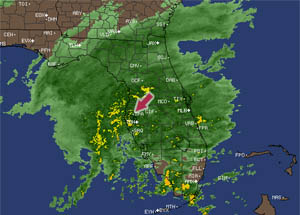 OMG. That looks awful! ¤ ¤ credit: Kymberlie R. McGuire | 12.09.02 at 03:57 PM | link-wow, we are the Rainy state, and it doesn't even look that bad HERE! Stay dry, hon!!! :) ¤ ¤ credit: kristine | 12.09.02 at 04:01 PM | link-Is all that grreny stuff sunshine then??....:) ¤ ¤ credit: AntGrad | 12.09.02 at 04:02 PM | link-We didnt even get the cold weather down here this weekend. I'm starting to feel a bit cheated Not that I should complain, but I've been running my AC at night for the past week. This is so not December. ¤ ¤ credit: John | 12.09.02 at 04:02 PM | link-It's sunny and 45 here. I'm liking it right now. ¤ ¤ credit: Tracy | 12.09.02 at 04:13 PM | link-The little yellow dots are bits of sunshine, right? :) ¤ ¤ credit: theresa | 12.09.02 at 04:22 PM | link-So THAT's who took all our rain! People here in Oregon say rain is just liquid sunshine, maybe that's what's going on in Tampa. ;-) ¤ ¤ credit: Lisa | 12.09.02 at 04:25 PM | link-Glad I left when I did! ¤ ¤ credit: Jason D- | 12.09.02 at 04:49 PM | link-Don't I know it Robyn!! I'm in Orlando, and we are drowning here!! My poor dog is in hell! :o/ ¤ ¤ credit: Maria | 12.09.02 at 06:24 PM | link-bleh :\ I had to go take my last final at UCF. Yay, driving in Orlando traffic in the rain. And I have this stupid cold. Normally I love the rain, but... ¤ ¤ credit: Andrea Harris | 12.09.02 at 07:17 PM | link-I just got home from being in it. It's like there's an idiot casting call and they release bad drivers out onto the streets all at once to frolic in the rain! Ugh. ¤ ¤ credit: dick | 12.09.02 at 07:47 PM | link-Kinda looks like what we've had here in Austin for two days now. ¤ ¤ credit: donna | 12.09.02 at 10:28 PM | link-