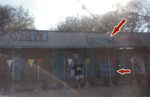 my next door neighbor has red white and blue marker writings all over their truck, and now the doors and windows of their apt. it's SOOOO fucking tacky! At first I thought I was that they let their kids draw on the truck, but yesterday I saw the wife out there writing the door and windows. I SO wish I had pictures of it. It's just WRONG!! ¤ ¤ credit: Ruthie | 05.23.03 at 11:23 PM | link-ok, we never made it to cold stone because well, let's just say that my sons school project almost broke up our marriage tonight, and well, i got pissed, threw a tude and well, that pretty much blew our chances of going to get mutha fucking icecream so uh, can i have a lick of your tongue errrrrrrr i mean ice cream????? *takes a breath* and sweet jesus that friggin car has me laughing, thanks i needed it! ¤ ¤ credit: yvonne | 05.23.03 at 11:29 PM | link-o.m.g This is the best. I see crap like this all the time here. I swear none of the rednecks went to school. Their signs are hilarious. ¤ ¤ credit: Dania | 05.23.03 at 11:48 PM | link-Before I moved to NY I lived in Oregon. If you've never been, it's very funny. Rednecks abound and plenty of treehugging hippies to balance them out. Definately see some hilarious things like this out there! One of my favorite signs ever was in New Orleans I was driving along and saw one outside a run down looking house that said "Hamburgers $1, FRINCH fries 50 cent." Mmmm. Frinch fries. ¤ ¤ credit: Maria | 05.24.03 at 12:01 AM | link-Oooh -- I need to scan an old college photo of a friend and I on spring break. It was in Shreveport, and a gentlemen's club was advertising ORINTAL SHOW GIRLS and FREE DRAF BEER. UPDATE: Here it is. The photo is over 8 years old now, so forgive the quality, but you can definitely make the above out. My friend (and maid of honor) Angela is shown posing in front of the place. ¤ ¤ credit: robyn | 05.24.03 at 12:12 AM | link-ooohhh, I gotta catch this one van that's around the corner from me for you...lol oh my god, it's got writing all over it in PAINT. Brown van,. pink paint. It says all kinds of stuff like how to buy avon from her, remember 9-11, all kinds of shit. I want to yell at her every time I see it to wash that crap off. Florida rednecks, hate how stupid they are but love them for countless hours of amusement. ¤ ¤ credit: kat | 05.24.03 at 03:59 AM | link-That's classic. Clearly, this guy was driving the car. ¤ ¤ credit: dave | 05.24.03 at 07:33 AM | link-Oh, and in answer to the question posed by your entry title, yes, I hear that Yes indeed, people are freaky..especially in Florida. I just went on vacation in Miami a couple weeks ago, lots of scary horn honking. I'm glad I didn't ever have to drive. I'm just a podunk small-town girl, all that big city stuff makes me nervous. ¤ ¤ credit: Ginny | 05.24.03 at 11:18 AM | link-OMG how I can relate to this ahhahhahhha.. Being from Pensacola and all.. Classic photo :) ¤ ¤ credit: lynn | 05.24.03 at 12:59 PM | link-For a moment there, I thought it said *termites* suck. ¤ ¤ credit: crankydragon | 05.24.03 at 02:27 PM | link-that's actually what i thought it said too, before i read the rest of the post. i thought maybe the car was the only thing they didn't eat. and i know it's natural, girl. it's obvious. besides, i saw that adorable cowboy boots picture. i just figured all that sunshine helped. i wish we'd get a little. ¤ ¤ credit: tanya | 05.24.03 at 04:45 PM | link-Yep, we've been out enjoying the FL sunshine on the weekends happily snapping photos and playing tourists. Sometimes you tend to forget you live in the paradise other people pay good money to visit... ;-) ¤ ¤ credit: robyn | 05.24.03 at 04:48 PM | link-Termites don't suck...they bite. ¤ ¤ credit: Mike | 05.24.03 at 06:49 PM | link-I don't know who Yvonne is or the joke about eating Drumsticks, but I have to tell you that it is very strange that I was sitting here eating one right as I clicked on that link. And now, of course, I have ice cream coming out my nose. Thanks, Robyn. ¤ ¤ credit: Venomous Kate | 05.24.03 at 07:02 PM | link-